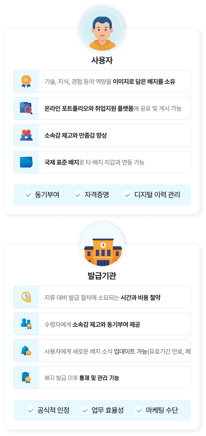 경험을 디지털 배지로 발급하고, 검증 가능한 통합 플랫폼입니다.